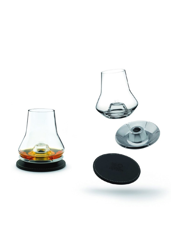Het speciaal gevormde glas onthult de kwaliteiten en subtiliteiten van whisky, cognac, scotch, brandy, Armagnacs en meer, terwijl het de alcoholdampen vermindert. Het wordt geleverd met een metalen koelbasis en een Peugeot-onderzetter zodat je van een single malt kunt genieten zoals het bedoeld is.